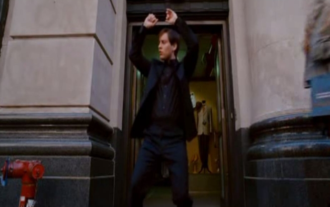 I kind of got used to this in the first film. In the second film though this idea was directly responsible for the downfall of the series. Let me explain. The worst plot line in part 2 was Peter losing his powers because he wasn’t focused enough (seriously?). This led to him quitting the Spider-Man dealio. This led to the ‘Raindrops Falling On My Head’ musical sequence. This led to the craptastic emo douchbaggery musical sequence of the third movie (much more on this later). This is all so dumb. We know this has been righted in the re-boot and has already given us one of the coolest scenes of the trailers. We also know spiders don`t shoot webs out of their limbs. They shoot them out of their bums. I would have been okay with this.