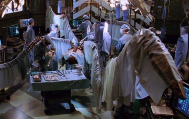 The character as a whole is fantastic. More specifically, the scene above is where, as the kids say, shit got real with this series. The Gobby fight was brutal and hardcore but the surgery scene in SPIDER-MAN 2 was everything I ever expected from Sam Raimi in directing a Spider-Man film. It’s scary, violent, perfectly filmed, and I always appreciate a nod to THE EVIL DEAD films in any shape or form. I honestly believe this is the best moment in all three films. What of it?