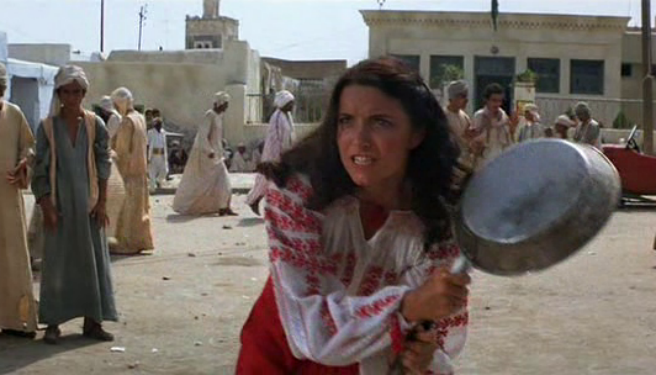 Good old Marion knows the best way to do away with pesky Middle Eastern henchmen and Nazis is with a cast iron skillet! Who knew you could fry an egg and save mankind with the same implement. Add that to the fact that nothing screams independent woman than having her defend herself with a cooking utensil. Ah, the good old days of chauvinism.