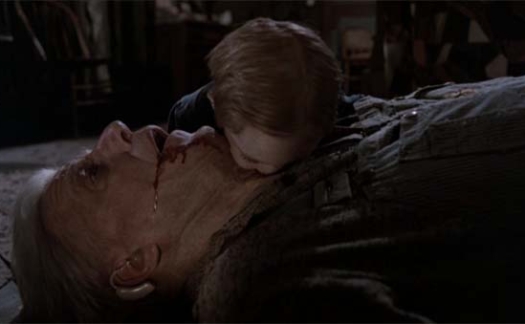 This happens every third horror movie but this might be the only time it ever worked. Gage pops out and slices up Herman Munster’s Achilles tendon and then feasts on his neck like a little creepy ninja. Seriously, is there any creepier kid in the history of creepy kids? No.