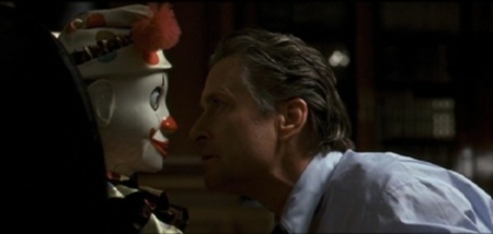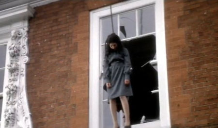 I love how unimpressed Damien is when this chick kills herself. What, exactly, do you have to get this kid for him to be happy? And imagine you’re just walking in with a specially wrapped bunny rabbit coloring book. Dammit, I knew I should have got that bucket full of eternal darkness.