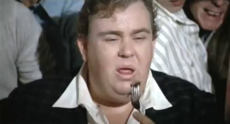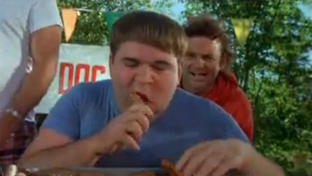 It starts out with John Candy offering to share a salad with his on-screen wife. Just seconds later, he’s agreeing to eat The Ole 96er, a 96 oz. steak, so that the entire family can dine for free. Why does this get the top stop over the classic COOL HAND LUKE? Because most people aren’t stupid enough to try and eat 50 eggs. Most people though are stupid enough to try and eat a giant steak, hamburger or pizza just to get a free t-shirt or something. We’ve all had that experience of sitting at a restaurant, trying desperately to finish our plate, the dreaded meat sweats, the rumbling, the grumbling, the shaking fork….and then…”There’s nothing on that plate but gristle and fat!”