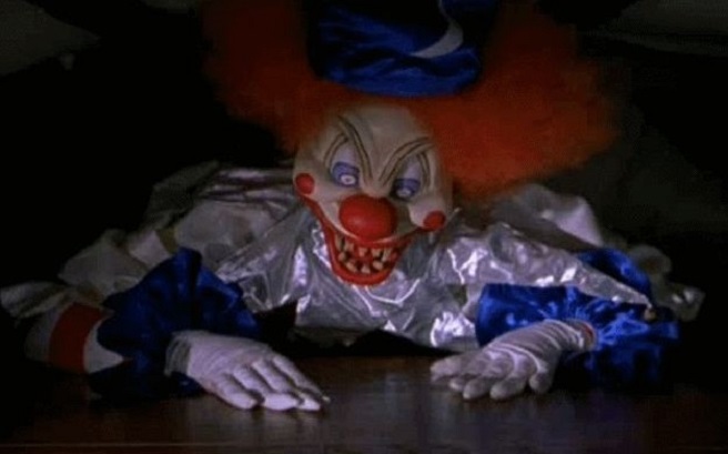 Okay okay, I realize we’ve titled this a litany of Creepy Movie Clowns, but anyone who saw the great John Carrol Lynch suit up as Twisty in the 4th season of American Horror Story Freak Show knows he’s more than a worthy addition to the pantheon of predatory killer clowns. Just look at that grin, for f*cks sake! Clearly just A toothy mouth-mask, what makes this one so damn creepy is that Lynch gets to use his made-up eyes in a way that a full face-mask wouldn’t quite allow. Half real and part artifice, the totality equals something far more macabre than you’d expect from a late-night TV show.