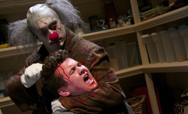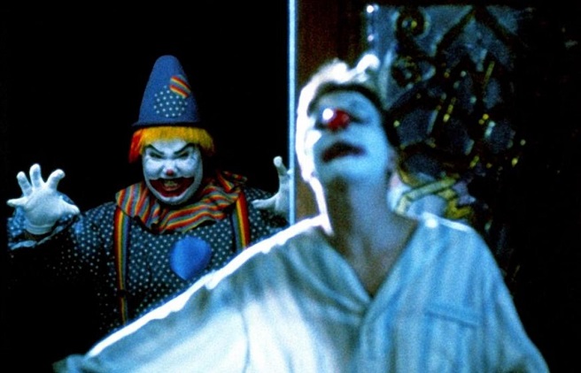 In our most recent honoree, the Irish import STITCHES also lends a level of levity most on this list fail to achieve. The 2012 horror comedy features English performer Ross Noble as the titular clown who, after being fatally victimized by a mean-spirited prank, returns from the dead to viciously stalk-and-slash the young punks who put him in a grave. That’s right y’all, our first zombie clown on the list! What makes STITCHES so disturbing, aside from the English accent, is just how jokily nonchalant he is while letting more blood than a damn donation bank!