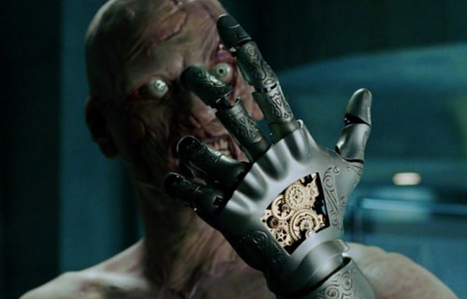 Since it’d be too easy and obvious to simply cite the titular demon half-breed himself, HELLBOY, why not go the other way and hail del Toro’s adaptation of Dr. Karl Ruprecht Kroenen instead? But it’s true friends, Guillermo gave the disgraced doctor a massive makeover from comic-page to screen by turning Kroenen into a “mechanical clockwork Nazi zombie,” as he described it to Collider in the past. Going from a meek, mild-mannered yes-man in the comic to a cold-blooded assassin in the film, Dr. Kroenen fortifies himself with a metal prosthetic hand, a steel spinal rod, and a clockwork wind-up heart to go along with his trusty gas-mask.