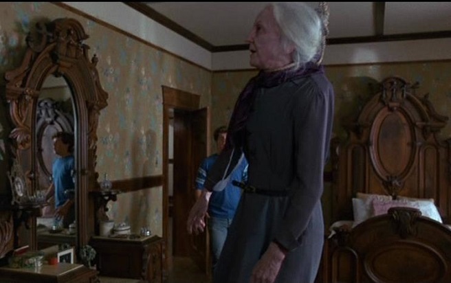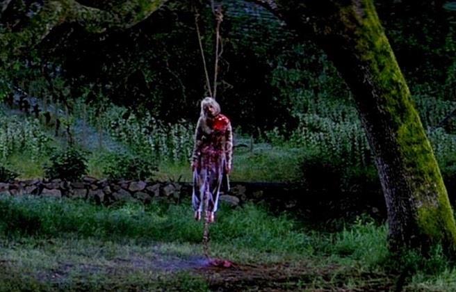 Any HOUSE fans in the house? Where you at? Well, in this ever so cheesy but fun 1986 haunted house yarn, director Steve Miner put forth one of the most nonchalantly unsettling hanging scenes to open his film. Just as our young hero arrives at an ominous mansion he looks to inhabit as a workplace, he ambles up the stairs into a garish bedroom. The camera is in front of him as he moves forward into the room, then suddenly, randomly, an old woman’s hanged body comes swinging into the frame out of f*cking nowhere. Hell of a way to open!