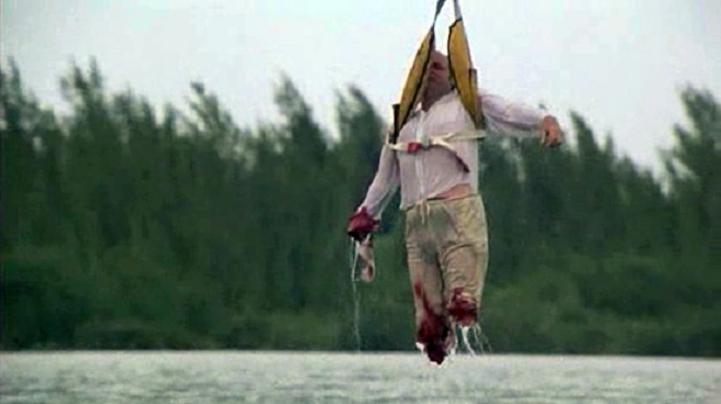 As cheap and schlocky as the 1979 JAWS imitator UP FROM THE DEPTHS remains, it at least it’s one of the only on our list to consciously incorporate some comedy to the mix. Some silly shite, this one, intentionally so. Alternatively titled JURASSIC JAWS, the flick centers on a series of deadly aqua-attacks upon a myriad of Hawaiian tourists. The culprit? Turns out it’s a gigantic unidentified species of shark with a taste from human hemoglobin! ’70s actor Sam Bottoms takes the lead in this movie that New World Pictures felt good enough to play behind David Cronenberg’s THE BROOD on a double-bill. Not sure it’s worthy of that, but it’s worth noting that director Charles B. Griffith also wrote the original BUCKET OF BLOOD and LITTLE SHOP OF HORRORS.