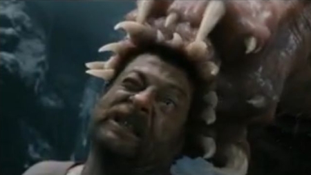 Here’s a description of the Ceti Eel’s life: The slime-covered larva will seek out a larger animal, enter its skull through the ear and wrap itself around the cerebral cortex. As the larva grows, the host suffers from insanity and eventually, death. Awesome. You know those special rooms in hell you always here about? There’s one filled with these fuckers.
