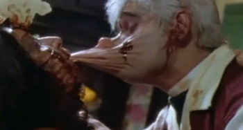 While the birth of Baby Selwyn is entertaining enough, the conceiving of the little zombie freak is even better. An undead priest and an undead nurse get to getting it on during the most fucked up dinner scene of all time and can’t decide whether to make sweet love or eat each other. Anywhoo, Selwyn comes two minutes later and starts destroying everything in his path. In other news, I got my son a Sumatran Rat-Monkey for his third birthday. Good call?