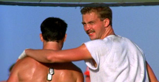 The beach volleyball scene in this movie is as gay as it it fake. The five-foot-fuck-all Tom Cruise, oiled from the waist up and spiking the ball while wearing jeans almost makes you forget about Anthony Edwards’ moustache. Almost. Unbelievably, things get worse from there.