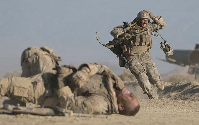 Two American Soldiers are trapped by a lethal sniper, with only an unsteady wall between them.