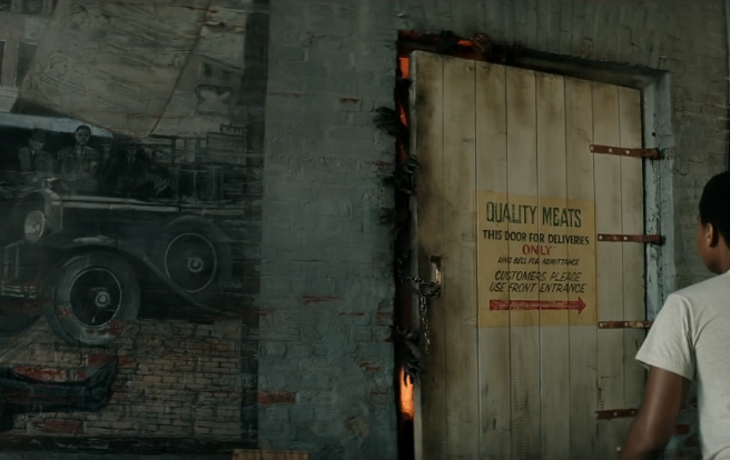 Look to the left of the above image. That mural is of The Bradley Gang. In the source novel, the Bradley Gang are a group of 1930’s bank robbers who are featured in a full chapter’s worth of flashbacks in which they rob banks, make a pit-stop in Derry, and get super-shotgun-massacred by the ENTIRE town. Pennywise helps too, shooting dual pistols into the gang whilst hanging out of a window as if King had just seen a John Woo movie before writing this particular Derry Interlude. I hope this scene is in the new film for no other reason than seeing Pennywise wielding dual pistols (or a Tommy gun) and taking out 1930’s gangsters sounds like pretty much the coolest scene ever. Will we see the full scene play out in the new film? Doubtful. But the mural is a nice tip of the hat to a sequence that would have been beyond badass. I guess we’ll have to wait for the eventual TV series based on the novel– oh, wait…