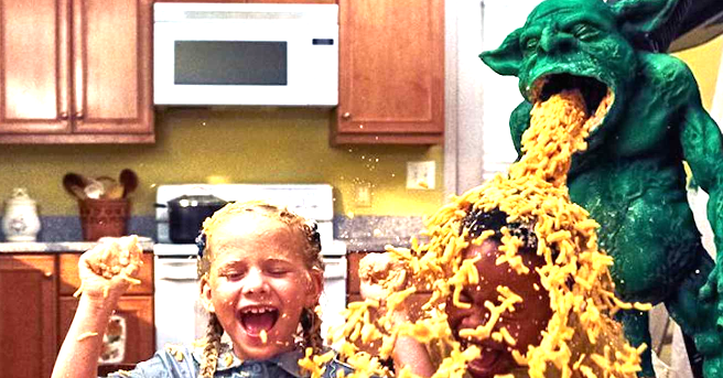 So this is cool! While 2018's psychedelic revenge-thriller phantasmagoria MANDY starring Nicolas Cage was full of weird imagery and crazy narrative tangents, none were probably quite as weird as those faux, diegetic commercial's Cage's character watched about a macaroni-and-cheese-spewing mascot THE CHEDDAR GOBLIN!