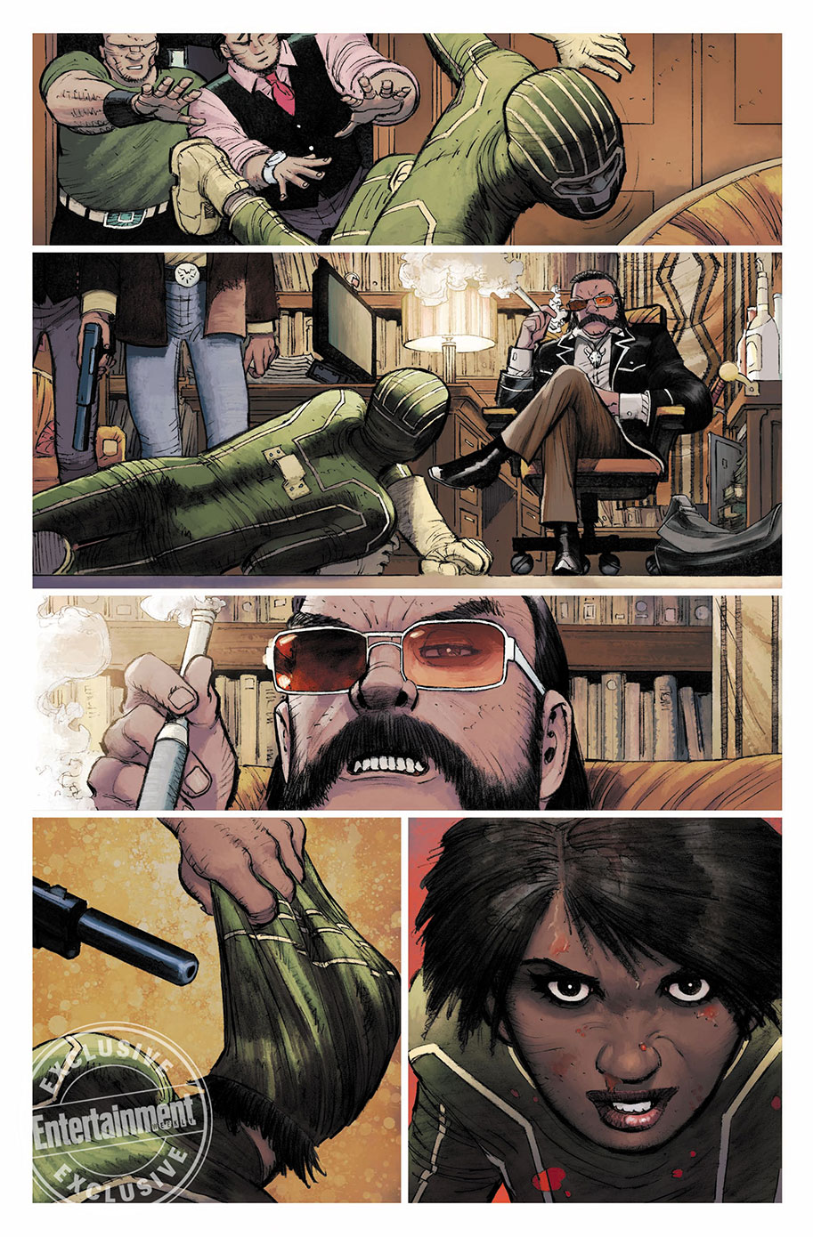 The new story will focus on Lee, a mother and Afghanistan war veteran who decides to jump into the green wetsuit and fight crime. As for the feature, EW got their hands on several exclusive looks at the upcoming book that reunited Millar and John Romita Jr., who worked on the original run of stories together. You can take a look at some of the images below, and you’ll soon realize that even this more experienced fighter will still get her own ass kicked.