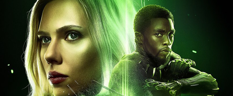 With just over a month left until Marvel unleashes AVENGERS: INFINITY WAR in theaters, the studio has unveiled a series of stunning character posters for the film. For the five separate posters, groupings of Marvel's mightiest heroes strike their best "superhero smolder," as an Avengers emblem lights their way toward victory … or doom! Those who are familiar with Thanos' coveted Infinity Gauntlet will immediately notice that each of the posters is colored like the fabled gems that power one of the MCU's most powerful and deadly weapons.