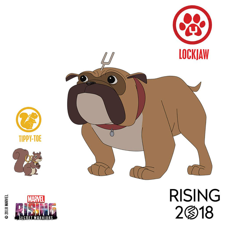 Lockjaw and Tippy Toe are voiced by Dee Bradley Baker(“Star Wars Rebels,” “Gravity Falls”). Two lovable and heroic sidekicks: Lockjaw is Kamala’s trusty, teleporting mutt and Tippy Toe is Doreen’s partner in crime and best squirrel friend.