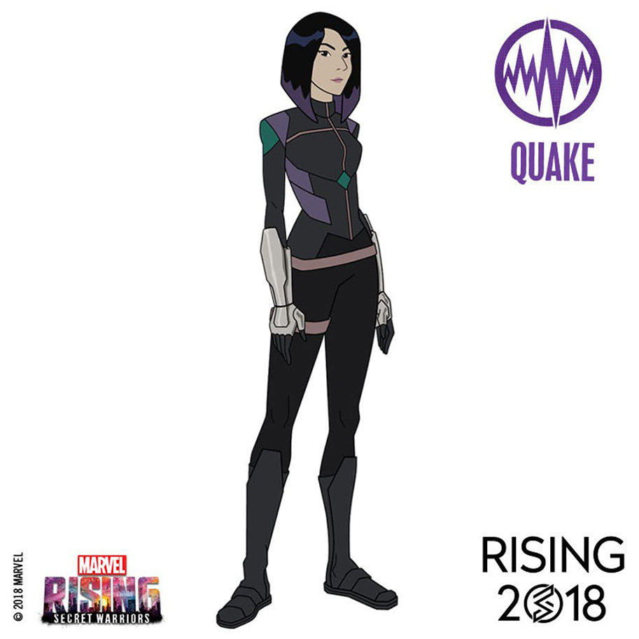 Daisy Johnson aka Quake voiced by Chloe Bennet (“Marvel’s Agents of S.H.I.E.L.D.,” “Nashville”) – a leading agent of S.H.I.E.L.D. whose tendency for rule-breaking gets her into trouble now and then. Daisy befriends the young group of heroes and through them discovers how to become a better leader. She can generate powerful vibrational waves, which produce effects similar to earthquakes.