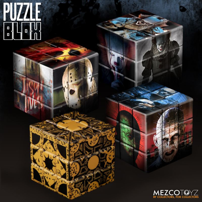 If you love a good brain teaser then you'll want to head on over to Mezco Toys where the company has just unveiled their new line of puzzle blocks, cleverly called Puzzle Blox. These 3D combination puzzle games are chock-full of colorful images featuring some of pop culture’s most famous and infamous characters, including Pennywise, Jason Voorhees, Hellraiser, and (obviously) the Lament Configuration.