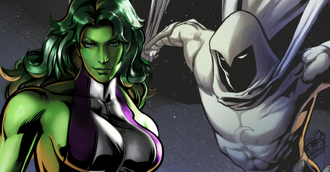 Here's a little more information on the two characters: Before becoming Moon Knight, Marc Spector was a former Marine and CIA agent before becoming a soldier-for-hire, and he amassed quite the fortune for himself over the years. However, when a job in Cairo brought him to a secret archaeological dig, Spector was left for dead by a former colleague who massacred the workers. After dragging himself through the sands towards the tomb of Konshu, the Egyptian moon god, Spector was placed beneath a statue of the god before his heart beat its last. Konshu then appeared before him in a vision and offered Spector a second chance at life if he would become the god's avatar on Earth and defend the innocent. As for She-Hulk, Jennifer Walters was a young woman who received an emergency blood transfusion from her cousin, who just so happens to be Bruce Banner. As a result of this transfusion of radioactive blood, Jennifer found that she could transform into a large, powerful green-skinned version of herself, but unlike her cousin, she's able to retain much of her intelligence and emotional control.