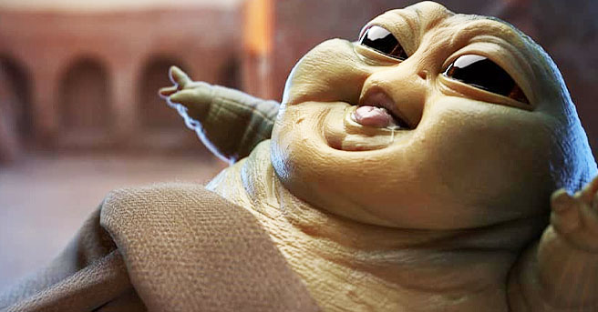 STAR WARS fans however are a fickle bunch. What is popular one moment can quickly become a dim memory the next. To misquote Captain Marvel, there's always someone trying to go "higher, further, faster." Such is the case with 3-D character development artist Leonardo Viti. Inspired by Baby Yoda, the UK artist imagined what our favorite frog eating, rancor owning, sarlaac loving Hutt gangster may have looked like as a baby. The results are the living embodiment of a chef's kiss: