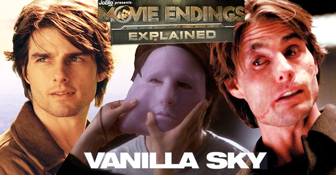 In this edition we’re taking a look at Cameron Crowe‘s 2001 film VANILLA SKY, a dreamy psychological thriller starring Tom Cruise. Told almost entirely in flashback, the film centers around Cruise’s character David Ames telling his life story to court psychologist Dr. McCabe (played by Kurt Russell) after he’s been charged with murder. In the flashbacks, he’s Tom Cruise, as you would expect, but in the interrogation room he wears a prosthetic mask over his face. The mystery deepens and unravels as the film reaches its big tiwst. In this video we take a look at what happens at the end of VANILLA SKY, the theories that have grown over the years about its final twist, and if the recently released alternate ending offers any more explanation!