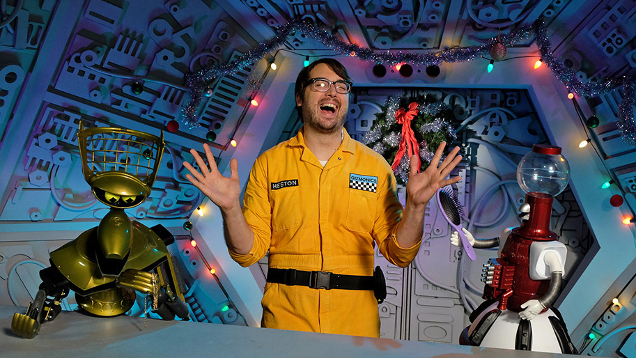 For those who are new to the program, Netflix's revived version of MYSTERY SCIENCE THEATER 3000 takes place aboard the Satellite Of Love, a space station where subjects are forced to watch bad movies in the name of science. The theory behind the audio/visual torture stems from a school of thought that prolonged exposure to terrible cinema will have an adverse effect on the human mind. The newest iteration of the beloved comedy series features the characters Jonah Heston (Jonah Ray), Kinga Forrester (Felicia Day), Max (TV’s Son Of TV’s Frank) (Patton Oswalt), as well as Jonah's robot companions Crow T. Robot (Hampton Yount) and Tom Servo (Baron Vaughn).