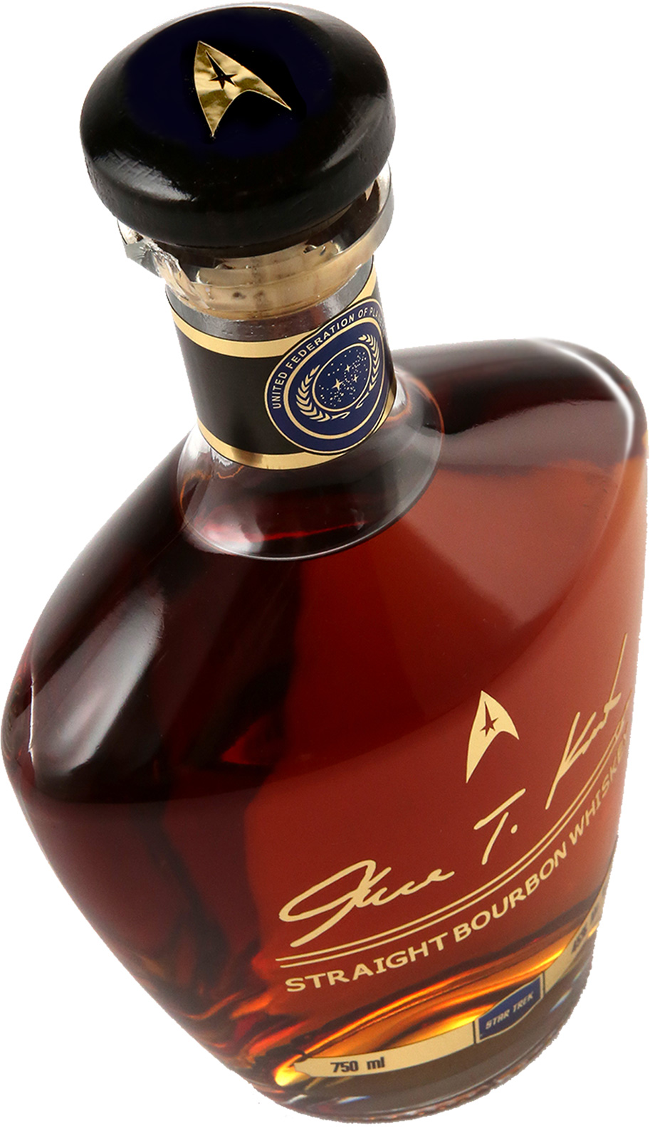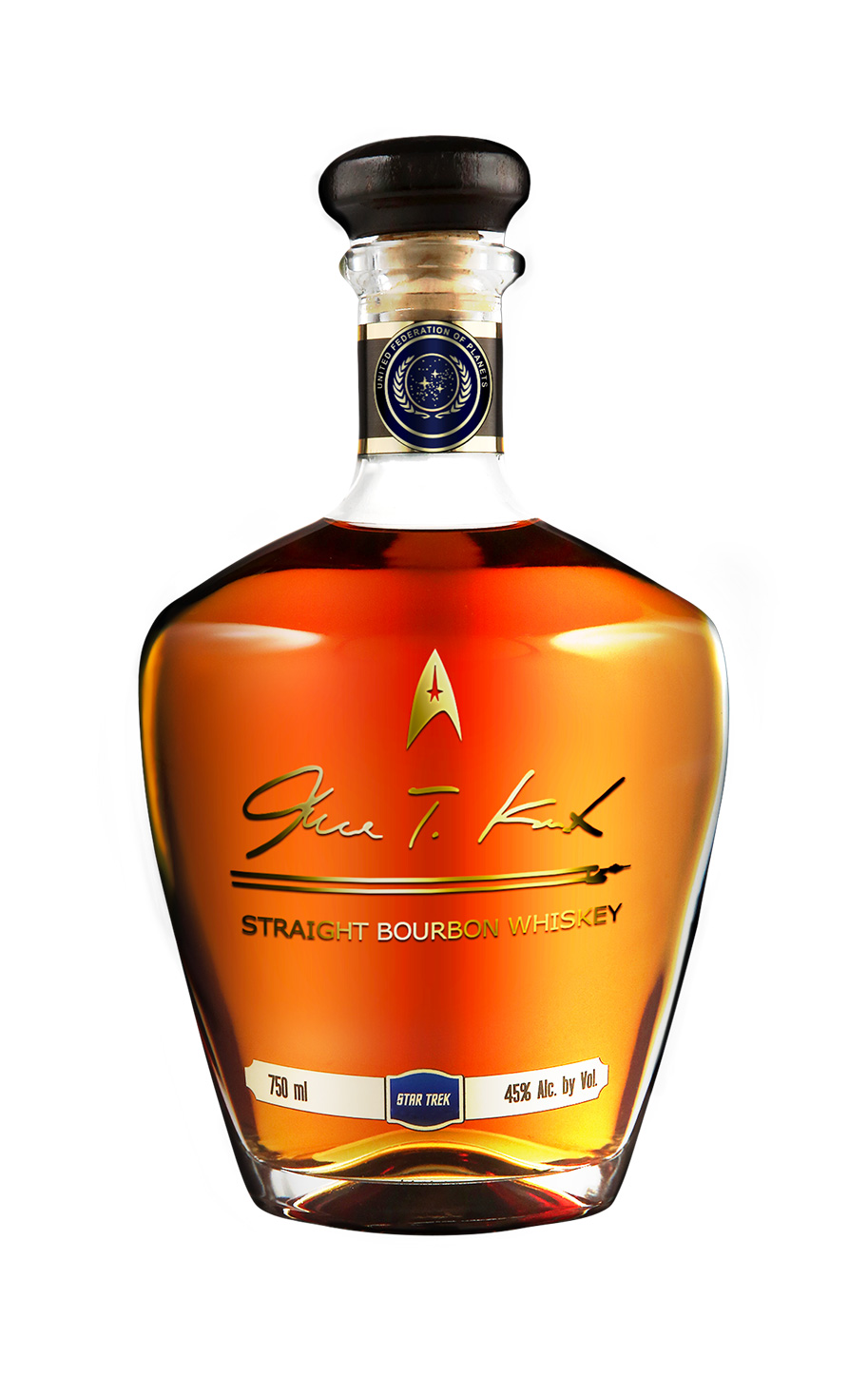 A serious Bourbon selected from choice barrels from Kentucky, Tennessee, and Indiana. Aging in range from 4 years old to 12 years old, each small batch release of James T. Kirk Bourbon exhibits a depth and richness seen in only the finest Bourbon. Crafted with the highest respect for the whiskey and for the man that bears its name, James T. Kirk Straight Bourbon Whiskey is for the serious Star Trek fan and serious Bourbon fan, alike. Notes of caramel, Asian five spice, and pecan are not to be missed in this very special small-batch Bourbon.