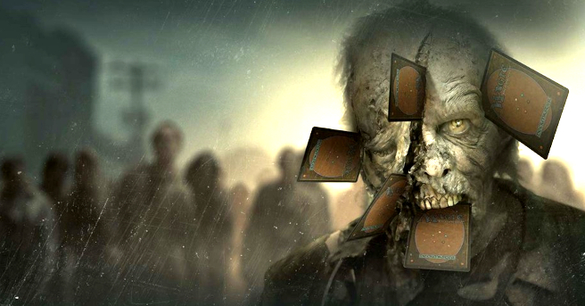So this sounds like it could be fun! Apparently Wizards of the Coast and AMC are teaming up to make a custom set of MAGIC: THE GATHERING cards based on the hit zombie TV show THE WALKING DEAD! This wouldn't be the first time MAGIC has used licensed characters in the game, as both MY LITTLE PONY and GODZILLA have had cards made of them as well.