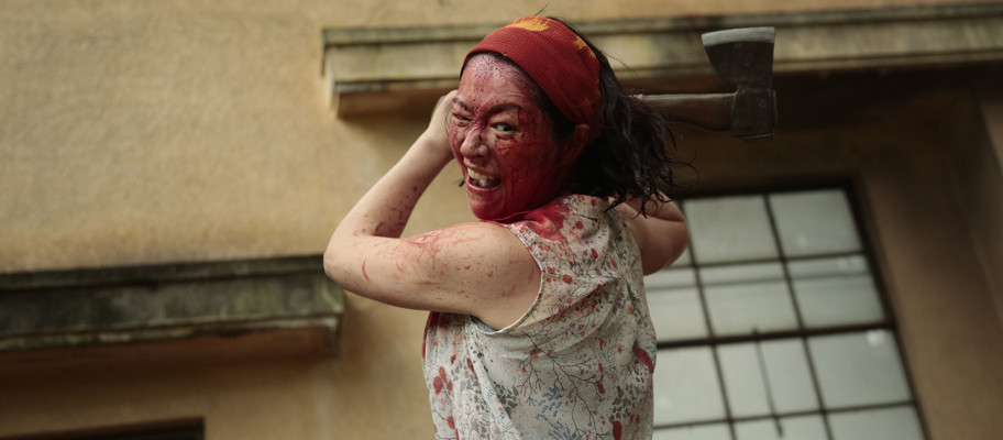 Sounds straight-forward enough. But there's something odd about all this; it's kind of goofy and weirdly-structured. The acting appears almost intentionally stilted, and some of the people do not react how you would assume they would in such a situation. Even the zombies behave rather strangely. While it's definitely entertaining, we have no clue why any of this is happening the way it is. About 37 minutes in, we start getting some answers. I'll stop right there and let you discover for yourself the secrets behind the weirdness, but rest assured the film does not let us down, ultimately delivering a third act that is simply ingenious. ONE CUT OF THE DEAD is one of those rare movies you not only want to watch immediately again, but feel like you have to.