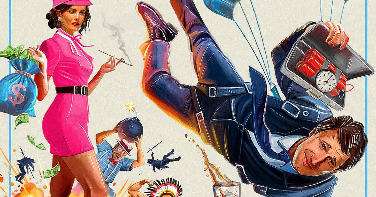 In addition to today’s announcement, Tews debuted a busy, tongue-in-cheek poster for Oriental Snatch that I’m sure is all in good fun. The poster features a suave James Bond-like character parachuting from a burning plane as a cast of colorful characters strike colorful poses, including an armored Nazi alligator! You don’t see that every day, eh?