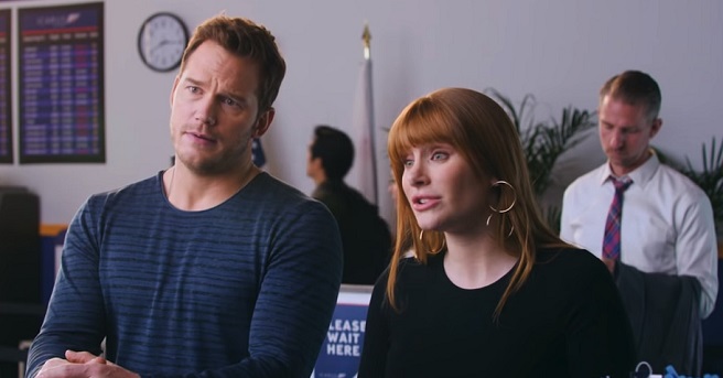 The video features JURASSIC WORLD: FALLEN KINGDOM stars Chris Pratt and Bryce Dallas Howard trying to board a plane… with their pet raptor in tow. Obviously, this shit ain't flying with the check-in attendant, but Howard argues that the raptor is a service animal. What ensues from there is a funny bit of sketch comedy basically pointing out how much of a puss Pratt's character is when it comes to the subject of his boy Blue.