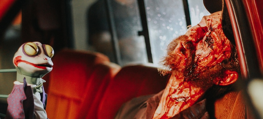 Toulon’s days of killing and torturing people ended when he was gunned down by the police. Jump ahead thirty years and a convention is being held at the Brass Buckle hotel to commemorate the anniversary of the Toulon murders – and to bring together collectors for an auction of the dozens of Toulon puppets that have made their way around the world over the decades. One of those puppets, a version of the fan favorite puppet Blade that has a knife and hook for hands, is in the possession of recent divorcee Edgar (Thomas Lennon), who decides to go to the auction with his new girlfriend Ashley (Jenny Pellicer) and the owner of the comic book store he works at, Markowitz (Nelson Franklin). So Edgar, Ashley, and Markowitz are right in the middle of the nightmarish action when all of the puppets come to life and turn this into the Texas Puppet Massacre.