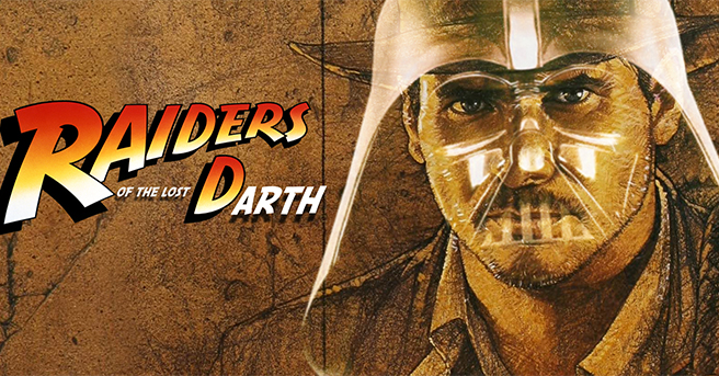 It's hard to believe but Raiders of the Lost Ark, usually considered one of the greatest of all "modern" action movies is actually forty-years old this month! With Harrison Ford STILL playing Indiana Jones after all of these years (with James Mangold shooting INDY 5 right now) we decided to give Raiders (our pick for perhaps the greatest adventure movie of all time) the mash-up treatment with another. Lucasfilm classic, Star Wars! Behold, Fabrice Mathieu's brilliant mash-up RAIDERS OF THE LOST DARTH!