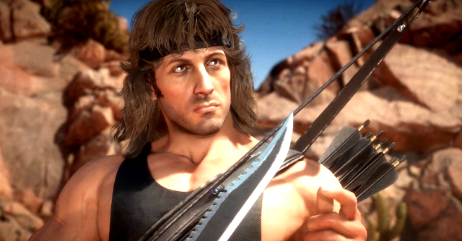 So this is awesome! A couple weeks ago, it was revealed that Sylvester Stallone himself would be reprising his role as the unstoppable John Rambo to be one of the new DLC characters added for the MORTAL KOMBAT 11 ULTIMATE PACK due out next month, alongside fan-favorite Mileena and purple ninja Rain. He'll be joining other 80's action icons, such as RoboCop, Terminator, and – presumably – Johnny Cage (NINJA MIME has 80's action cheese written all over it!)