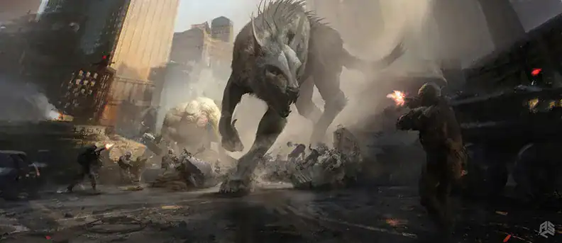JR: First of all the backstory of RAMPAGE is not really mind-blowing as far as storytelling so that gave us a great place to start from because we could go a lot further with any story we wanted to prep behind it. Really I think the nostalgia of RAMPAGE is just three monsters attacking buildings so you just take that piece of the concept and build something out exciting behind it, so I feel like the possibility of being attacked for doing it is a little less. We’re really just trying to have a lot of fun with the title and the monsters themselves and not take ourselves too seriously.