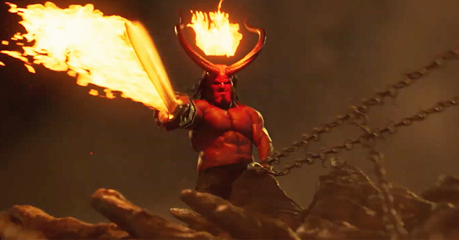 REVIEW: Let me preface this review by admitting that ever since it was announced, I was wary of Millennium’s new, R-rated reboot of the HELLBOY saga. I just never understood why, if they are as willing as they always said they were, the studio wouldn’t allow Guillermo del Toro and Ron Perlman the opportunity to finish the trilogy they so beautifully set up in the last two HELLBOY’s in favor of a reboot where one was never really needed. I get that the idea was to relaunch the franchise for a new generation, but the early trailers make it look like little more than a schlocky B-programmer. That said, I went into this with as open a mind as I could muster, as I genuinely like David Harbour as an actor, and also have enjoyed much of director Neil Marshall’s work in the past, specifically his excellent directing on “Game of Thrones”, as well as the anarchic fun of DOOMSDAY and CENTURION. Surely this had to at least be ok?
