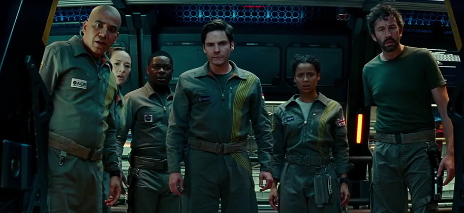 Well, except for Mbatha-Raw, who gets the meat of the movie as she deals with a conflicting personal tragedy (which slowly unravels throughout the film) and, in turn, the scenes with the most emotional impact. Also in the mix is Elizabeth Debicki (who makes one hell of an entrance) who plays a mysterious scientist that throws them all for a loop. As I mentioned before, there are plenty of "Holy Shit" moments here and I found myself yelling at the screen numerous times or laughing aloud at some of the stuff that comes into play. I'm tap-dancing around spoilers, but there are many moments here that are familiar (think PROMETHEUS, ALIENS, SUNSHINE, THE THING etc.), but also slightly askew in a really fun way. In many ways I can see how this had a struggle to the big screen as it's not exceptionally cinematic, which isn't to say it doesn't look good, but it's not overflowing with style or pizazz. It's perfectly well done and competent, but not a standout in terms of vision or execution.