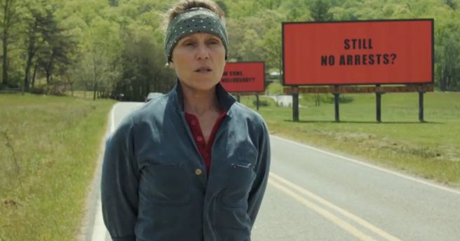 PLOT: After her daughter is raped and murdered, and over a year passes without any arrests, a Missouri woman, Mildred Hayes (Frances McDormand) rents three billboards accusing beloved local police chief Willoughby (Woody Harrelson) of ignoring her case.