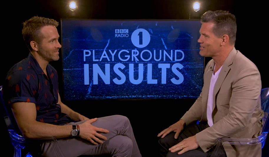 I hope you're ready to feel some love, dear readers, because Ryan Reynolds and Josh Brolin are about to demonstrate just how far they've come as friends while playing BBC Radio 1's "Playground Insults." The rules of the game are simple: Make each other laugh, the sillier the better. The game ends when someone can't control their laughter or a player delivers a killer insult. No one is allowed to take the insults personally, regardless of how savage the verbal abuse turns out to be.