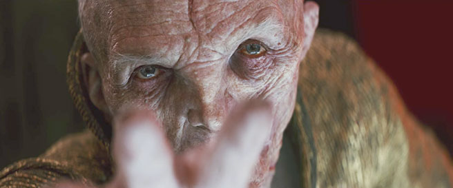 When I was working on the character of Kylo, I came to a place where I thought the most interesting thing would be to knock the shaky foundation out from under him at the beginning of this movie. By the end of this film, he’s gone from being a wannabe Vader to someone who is standing on his own feet as a complex villain taking the reins…But then the question is: What place would Snoke have at the end of that? That made me realize the most interesting thing would be to eliminate that dynamic between the ‘emperor’ and pupil, so that all bets are off going into the next one. That also led to the possibility of this dramatic turn in the middle, which could also be a really powerful connection point between Kylo and Rey.”