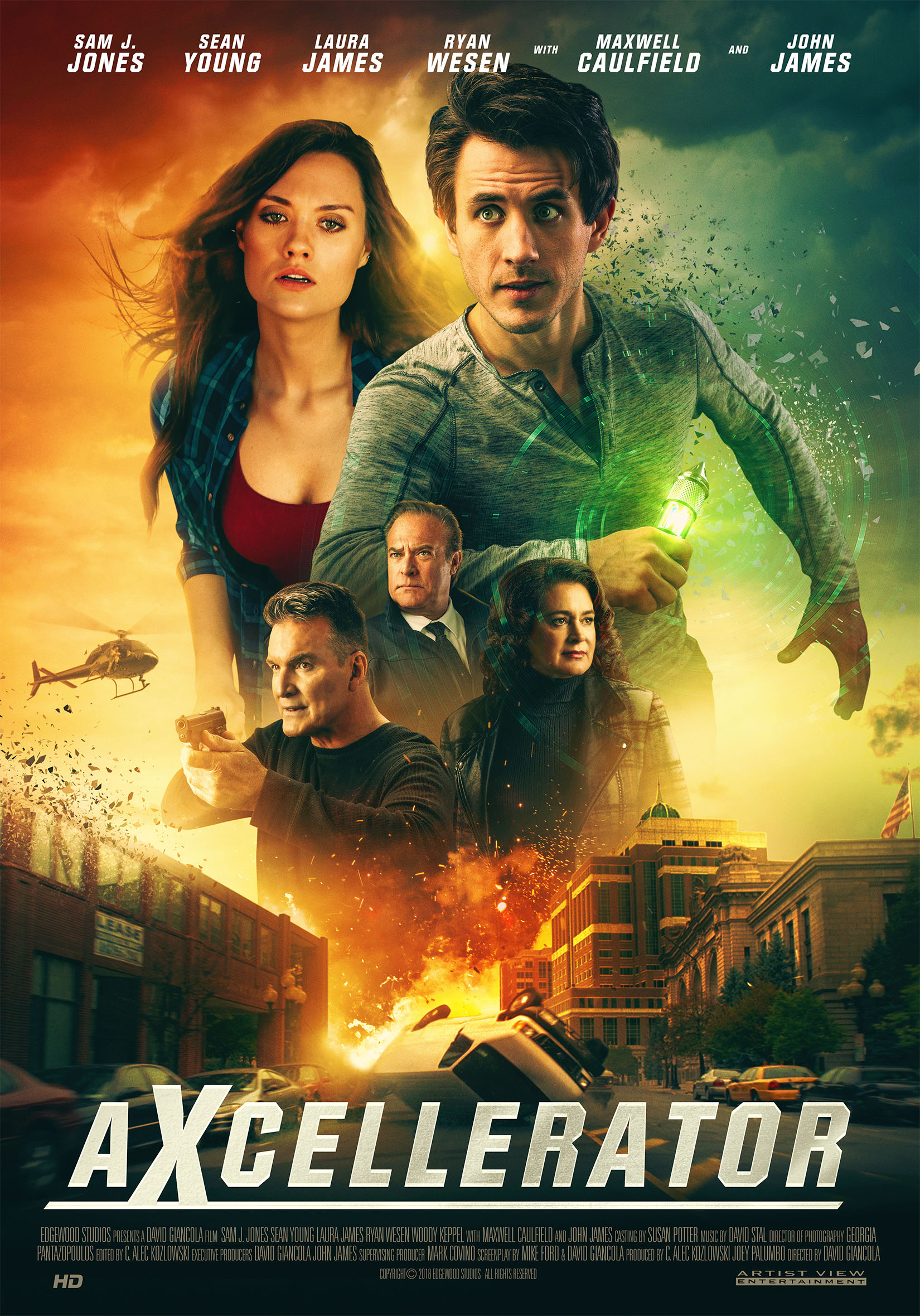 Trapped by gunfire, Tomas passes the device he was attempting to steal to Dane, who is teleported right into the arms of Kate (LAURA JAMES “America’s Next Top Model”). She could be the girl of his dreams except for the global conspiracy he has just embroiled her in. Plus, the stolen teleportation device, code named Axcellerator, seems to have a mind of it’s own.
