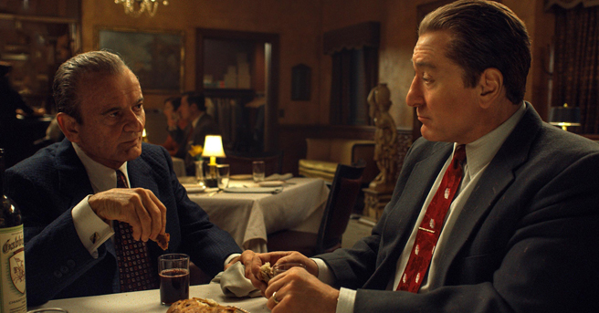 While speaking with Entertainment Weekly, Scorsese said that it took him more than a decade to secure financing for the project. "People just weren’t interested in financing it—and that was before the CGI," Scorsese said. "Nobody would give us the money. But I really felt that De Niro and I had one more picture to make, at least, and he was really connected with the character." Netflix wound up coming to the rescue by coughing up the dough for the expensive project, which makes use of digital de-aging to peel back the years on its main characters. Entertainment Weekly also released a new photo from THE IRISHMAN, which features Frank Sheeran (De Niro) sitting down with mob boss Russell Bufalino (Pesci).