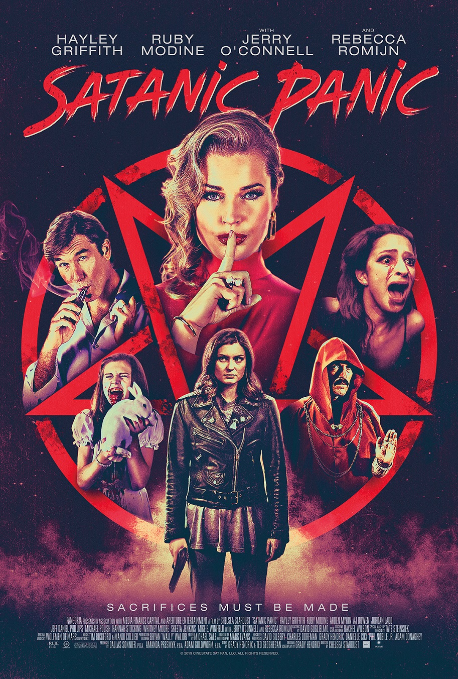 It was just earlier today that we shared with you guys the terrific trailer for Chelsea Stardust's upcoming horror-comedy SATANIC PANIC starring Hayley Griffith, Ruby Modine, Jerry O'Connell, and Rebecca Romijn. And now we have the movie's killer 80's style poster to share with you guys!