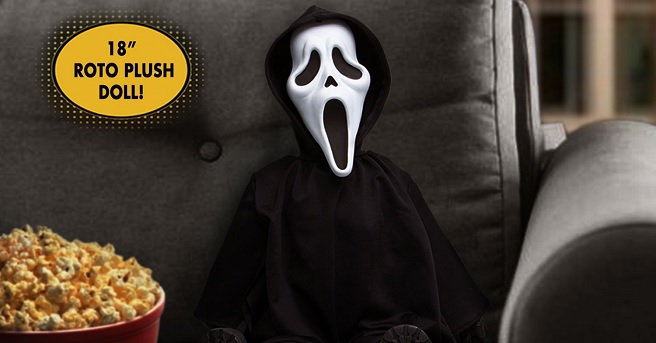 If you're a fan of Scream (watch the original film HERE) and have $94 to put toward merchandise, Mezco Toyz has unveiled a very cool new item: a plush Ghostface that stands about 18 inches tall.
