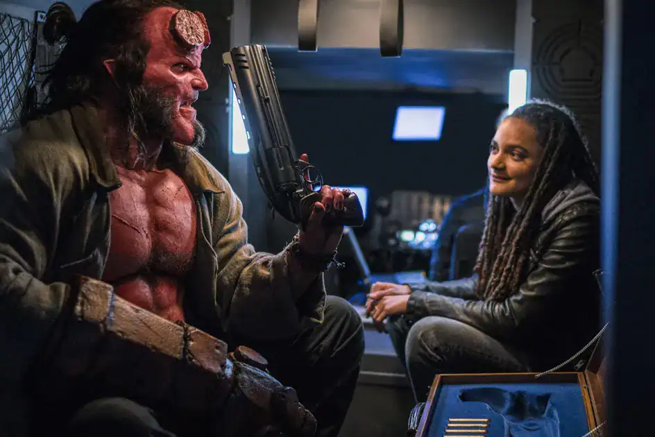 Harbour says that Hellboy and Alice’s relationship is “avuncular” and he insisted on it being well known that Hellboy cannot have sex with a human being, although embracing his dark fate would potentially allow that.