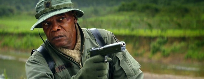 When it comes to set visits, it’s not uncommon to see one, maybe two scenes being shot. As far KONG goes, we saw a total of 4, which is very impressive considering how busy this production is. In order to see the first scene in action, we had to travel through some serious jungle. I can tell you firsthand that sneakers were not the best choice for hiking. That aside, it was a great experience just to traverse the muddy path on the way to set. You completely buy into the fact you’re on Skull Island with just the commute alone. Fortunately for us, there was more to look at than just mud and trees; there was also a Sam Jackson.