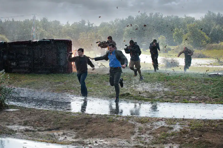 “Listen, I’ve just come off a movie where there is green everywhere,” said Armitage of his time in Hobbiton, “and there’s like a licorice hanging from a piece of string and someone is saying, ‘It’s the biggest most ferocious dragon you’ve ever seen, action!’ So I’m imagining anything. In fact I probably do imagine it too big. I’m probably going, ‘My god this tornado!’ It’s actually not that big. It’s not dragon sized. But in a way, a tornado is the monster of this movie and you have to treat it like that. It’s unpredictable, it moves around, it gets bigger, it gets smaller, it can swallow you up. So yeah it’s our monster.”