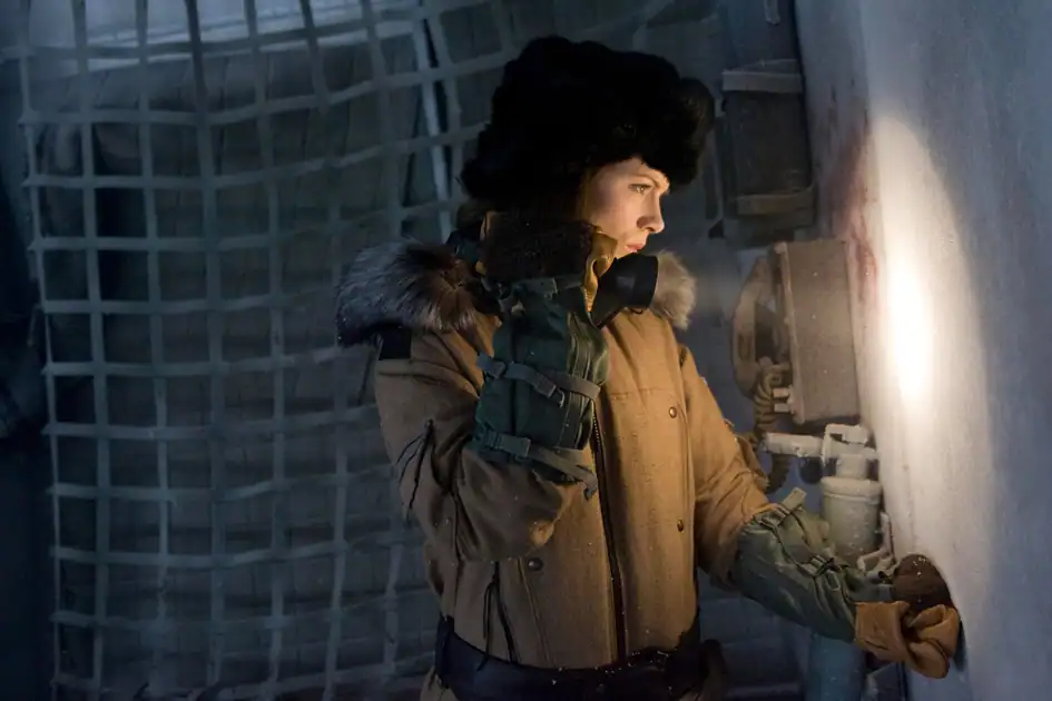 Well today, the latest incarnation of one of these thirteen soundstages couldn’t be any farther from the sunlit spring day it was outside. WHITEOUT is based on writer Greg Rucka’s acclaimed graphic novel and is a dark tale immersed in white. That’s what happens when your story is set in Antarctica. It tells the story of U.S. marshal Carrie Stetko, on a solo assignment to Antarctica, to investigate a murder three days before the long, dark winter begins. Production had recently shifted from the frozen tundra landscapes of the Manitoba winter, so I arrived expecting to only see interior sets. So when one of the producers led us to a massive, cavernous soundstage, I was impressed with what stood before me. I’ve wandered many movie sets in my days as an extra, but I’ve never come across the level of set construction currently confronting me. I was staring at the exterior of a massive arctic base, where the film’s climatic set piece and titular ‘whiteout’ will be staged. A whiteout occurs when snowfall is so heavy that your surroundings are completely obscured on a blanket of white. Perfect for a movie, especially when there’s a killer on the loose.