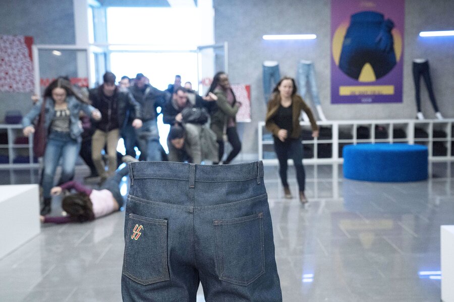 LOWDOWN: Slaxx (WATCH IT HERE) stars Romane Denis as Libby, an eager and wide-eyed retail worker who’s starting her first shift at the CCC, an eco-friendly and insufferable Millennial/Gen Z inspired clothing store. It’s through her perspective that we enter the wild and wonderful world of retail and all of the minute details that make it run in the horror-comedy. As the overnight goes on, one by one, each employee succumbs to the man-eating pair of jeans, forcing Libby and her cranky co-worker Shruti (Sehar Bhojani) to go on the offense. Together they must find out what the f*ck is going on and how to stay alive.