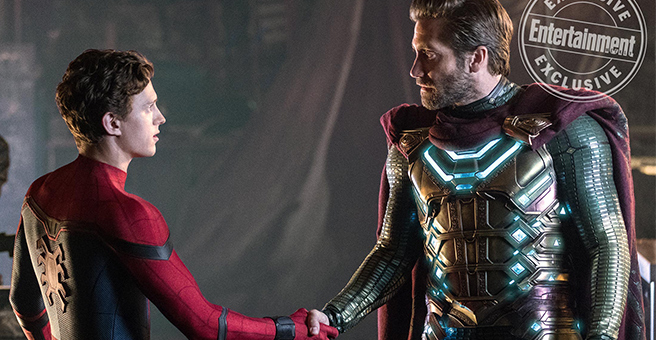 No matter what happens over the course of AVENGERS: ENDGAME, we for sure know we will see Peter Parker/Spider-Man (Tom Holland) again this summer’s SPIDER-MAN: FAR FROM HOME. This time around the web-slinger is going international, taking a school field trip to Europe and soon learning that trouble will always find him, no matter what time zone. Director Jon Watts and Holland recently spoke about how this journey will continue to shape the young hero, and a new image finds Peter shaking hands with the handsome man in the dope suit, Mysterio, played by Jake Gyllenhaal.